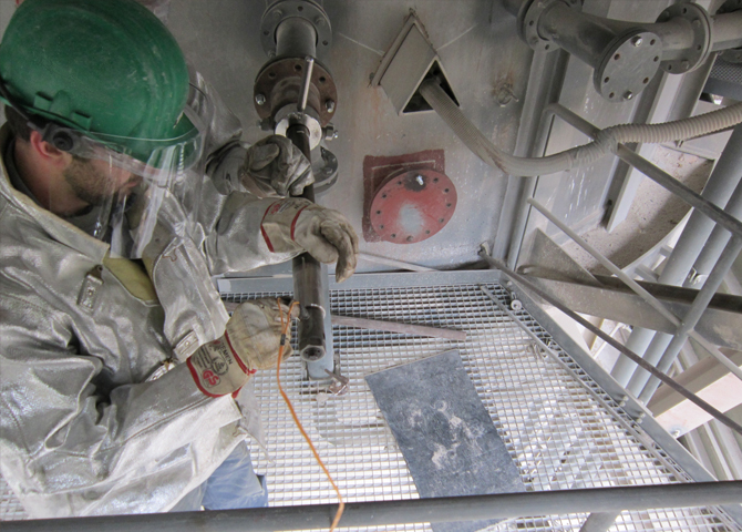 Verengte Öffnungen, unkontrollierter Materialfluss, schwer zugängliche Hochtemperaturbereiche: Ablagerungen unter solchen Bedingungen zu entfernen? Eine Herausforderung. Außer mit dem ATD Cardox® Druckgasverfahren.
