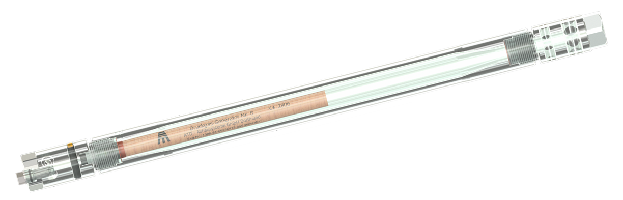 Für eine erfolgreiche Anwendung benötigen die ATD CARDOX® Druckgasrohre speziell angepasstes Betriebsmaterial: ATD Druckgasgeneratoren, CU-Ringe und ATD Berstscheiben.